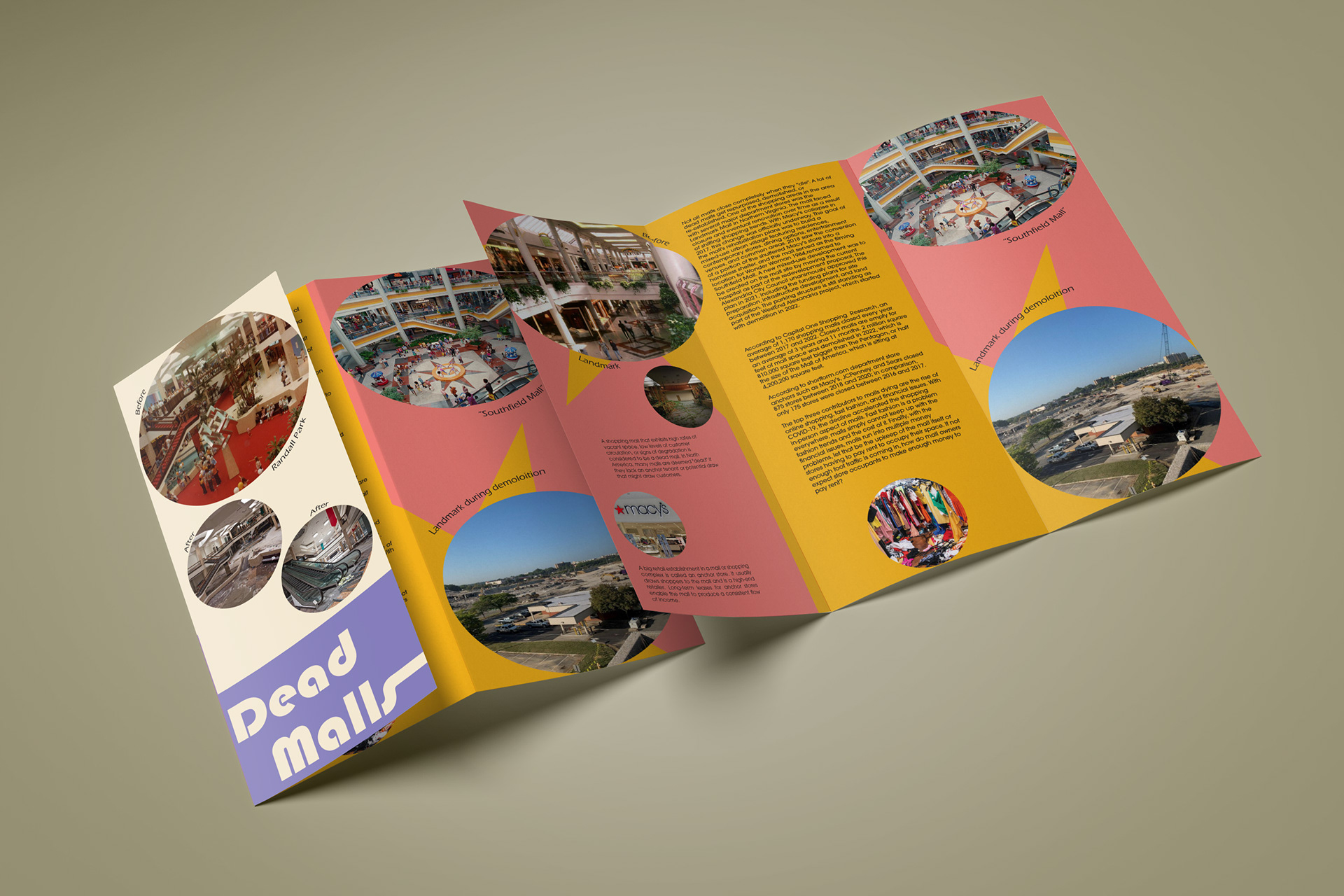Brochure about three popular Dead Malls in America.